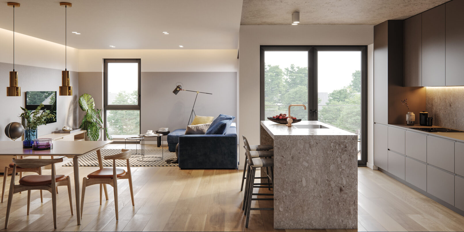 In der Rösrather Strasse 532 in Köln werden im Stadtteil Rath/Heumar ein Mehrfamilienhaus in erster und hinterer Reihe realisiert. Kontrollierte Be- und Entlüftung werden für ein gesundes Raumklima sorgen. Mit der geplanten Tiefgarage für beide Häuser entgehen die Mieter dem Kölner Parkplatzproblem. Der Baubeginn hier ist voraussichtlich März 2022.